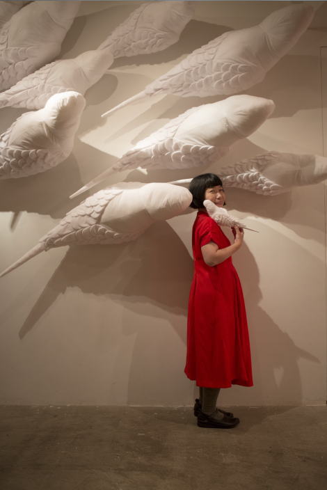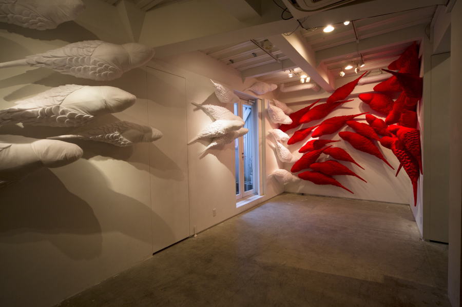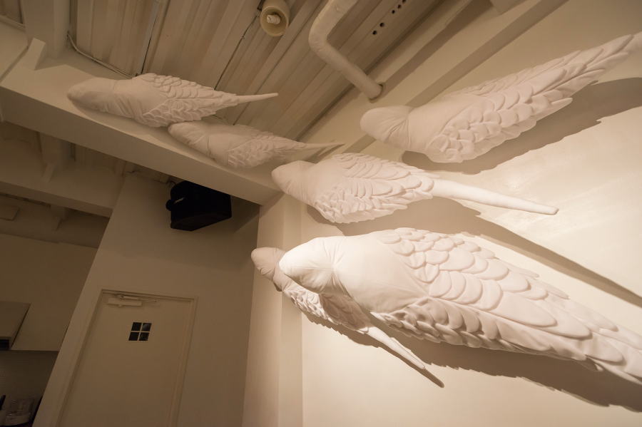 虚無に向かっているイメージをインコたちに託しました。