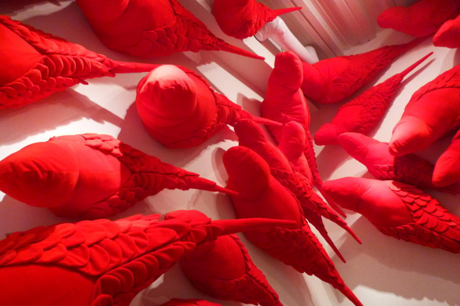 インコがぎゅうぎゅうにうごめているようにもみえて、