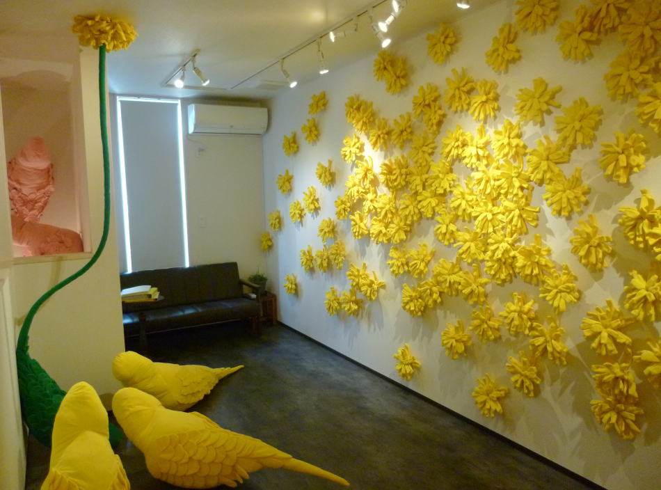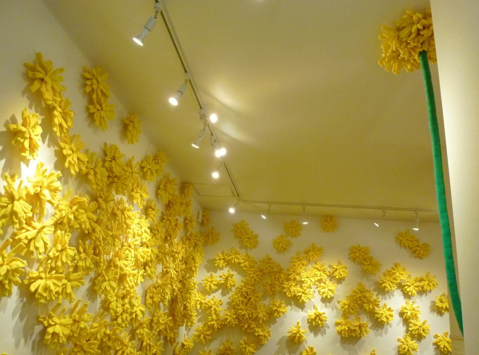 会場にいくたびに、外のタンポポの開花に合わせ、作品のタンポポを増やしました。